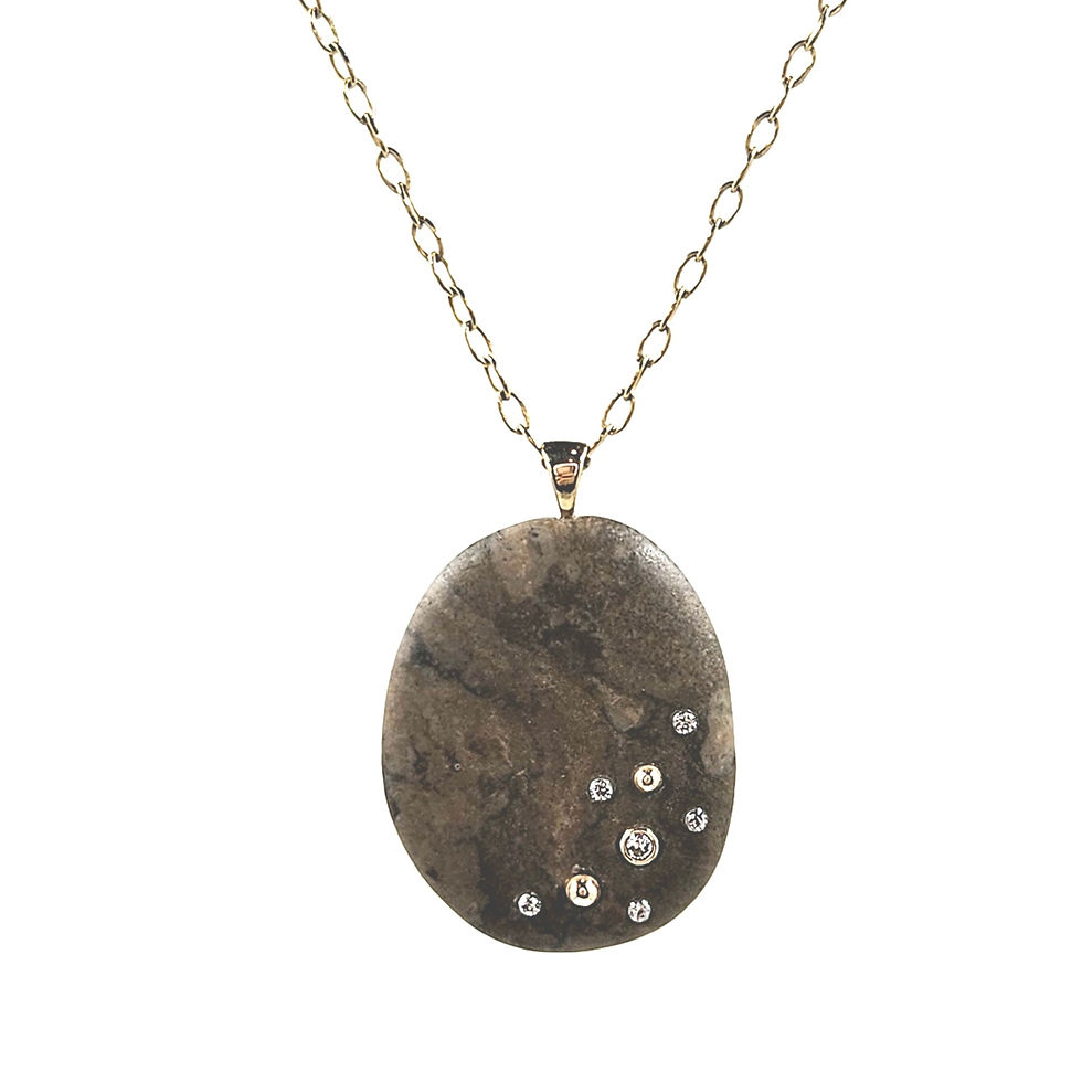 Beach Stone Pendant with Moissanite Gems and an Australian Crystal Opal Pendant