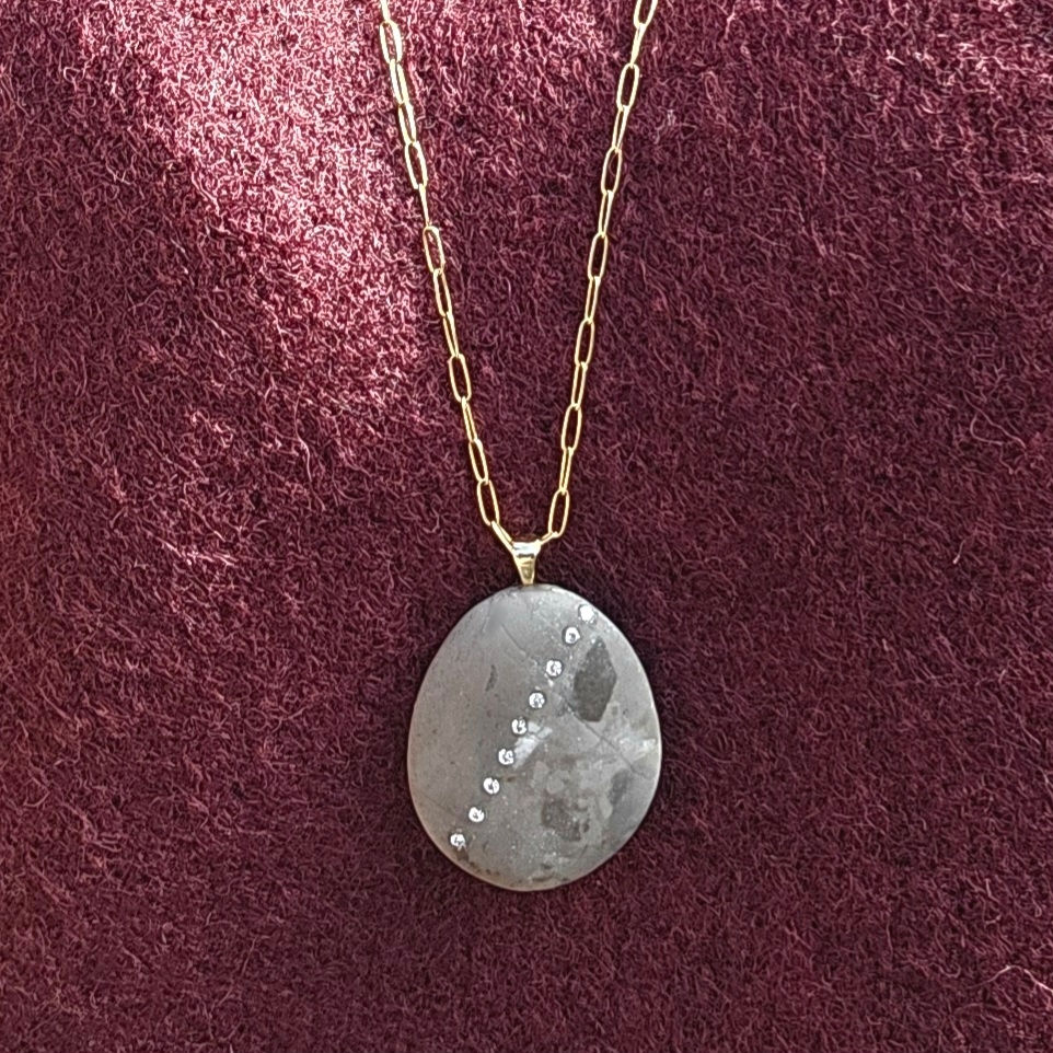 Colgante de oro de 14 quilates con piedra de playa negra y diamantes
