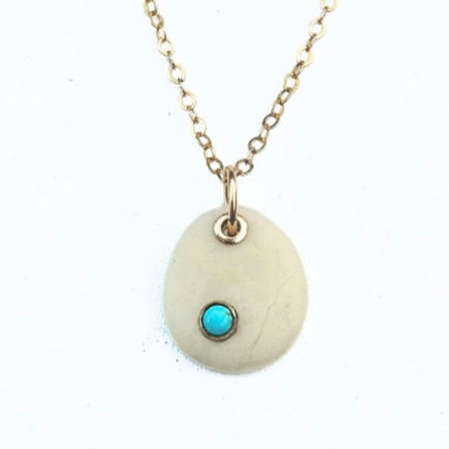 Beach Stone Pendant with Moissanite Gems and an Australian Crystal Opal Pendant
